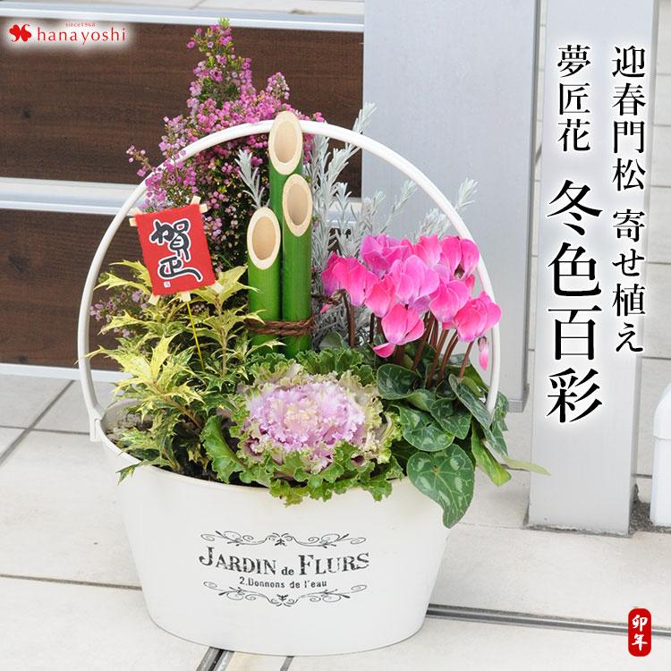 お正月 夢匠花 冬色百彩 門松 寄せ植え 正月飾り 玄関 おしゃれ 迎春