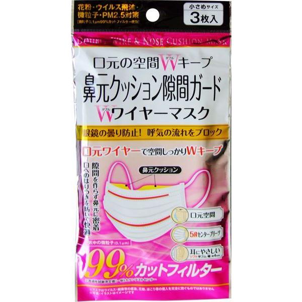 マスク ダブルワイヤー 5段プリーツ 鼻元クッション付 小さめ 3枚入