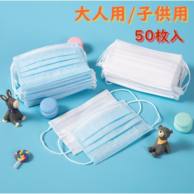 マスク 50枚 国内発送 複数購入で宅配便 使い捨て マスク 白 プリーツ