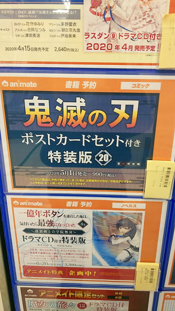 鬼滅の刃20巻が2020年5月1日に発売 スポンサーリンク 特装版が予約可能な店舗は ネットではすでに予約できなくなっている店舗が多いですが 実店舗ならまだ予約を受け付けている店舗もあるようなので 地道に回るしかありません 特装版は 本の注文をしに来ただけで 鬼滅の刃ですか. 鬼滅の刃 のコミック最新刊 20巻の発売日が決定しました 特装版の特典や予約 在庫情報などご紹介します 鬼滅の刃 21巻 22巻 23巻 特装版 同梱版の予約はこちら 特装版 通常版 電子書籍 画像をクリックすると. 鬼滅の刃21巻の特装版の特典についてのツイッターの反応をご紹介します 徒歩5分の本屋さん ありがとうございます 21巻特装版もバッチリ予約 鬼滅の刃20巻特装版かっこよい 質がよい やばい 言うことない 包み紙 台紙 も捨てれんやつ.
