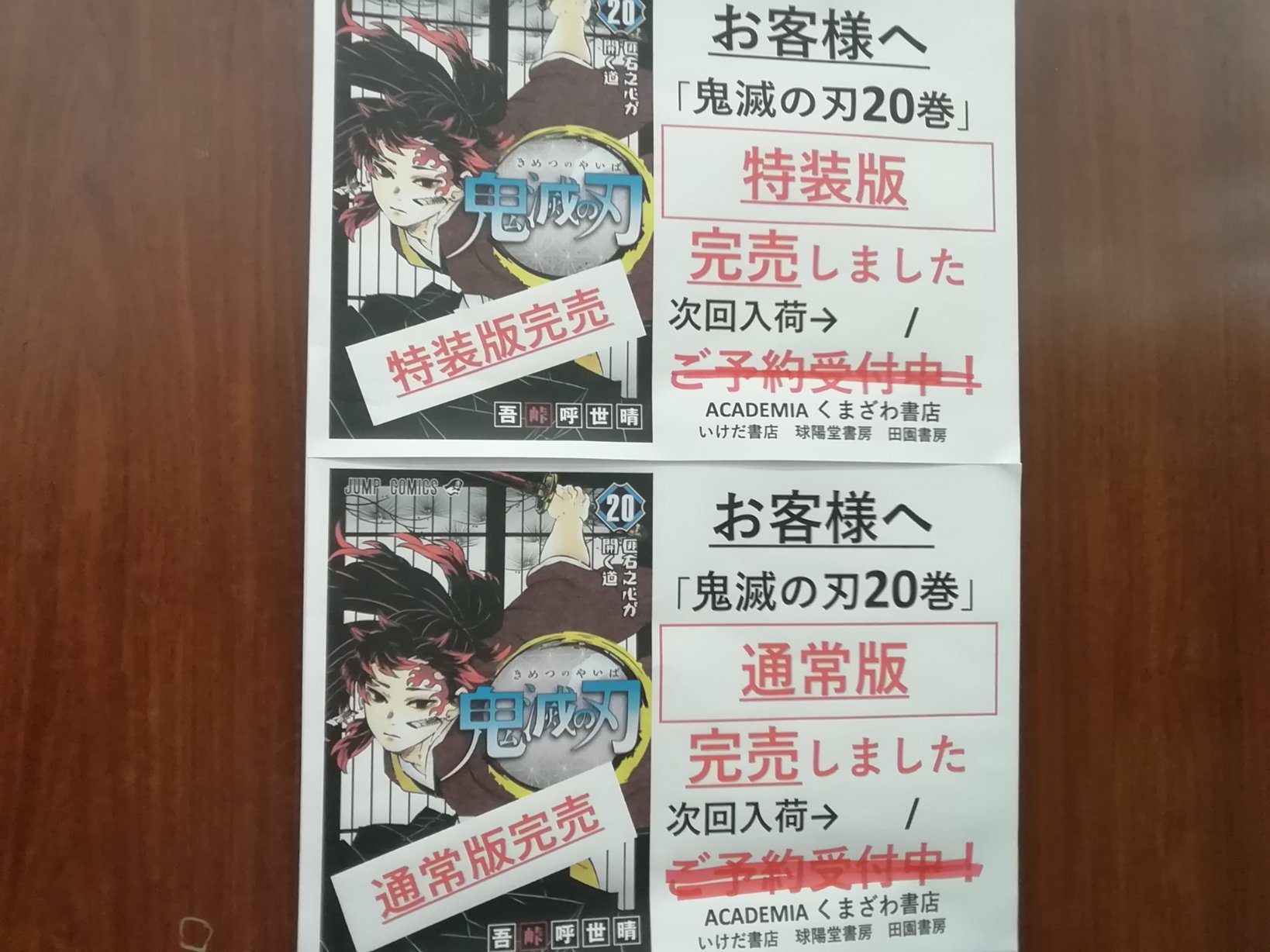ট ইট র くまざわ書店東神楽店 鬼滅の刃 20巻 本日入荷